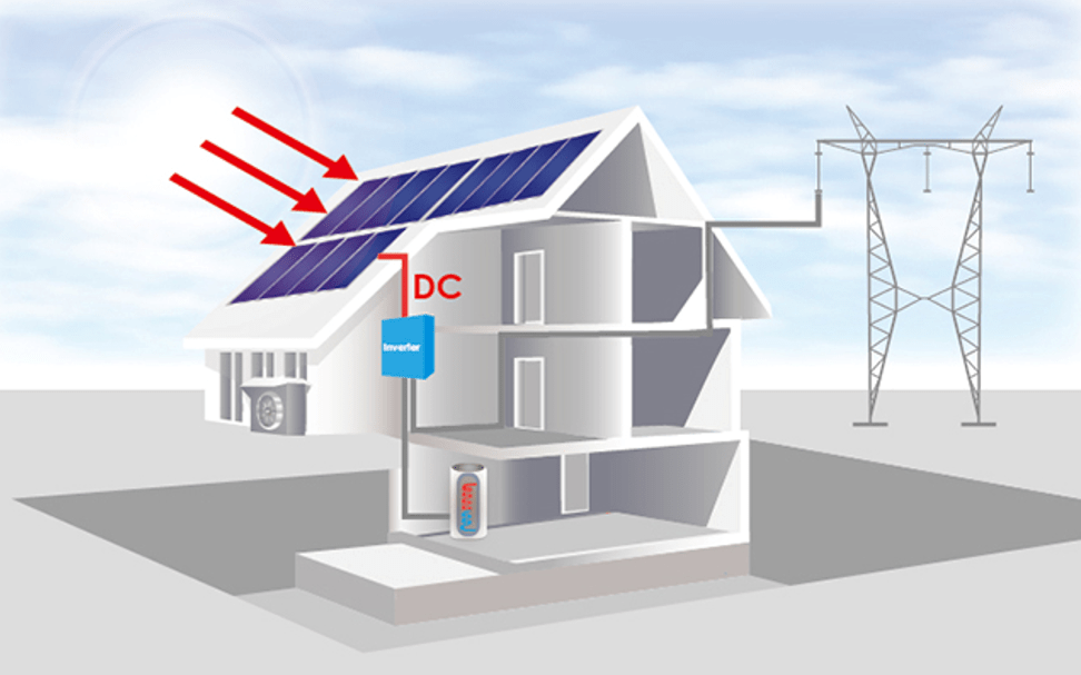 2. An inverter converts the DC into alternating current (AC) electricity, making it useable for homes and businesses.