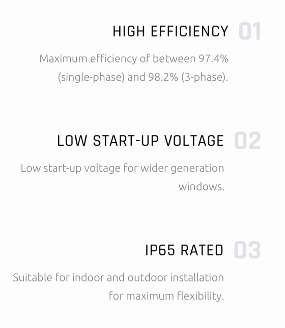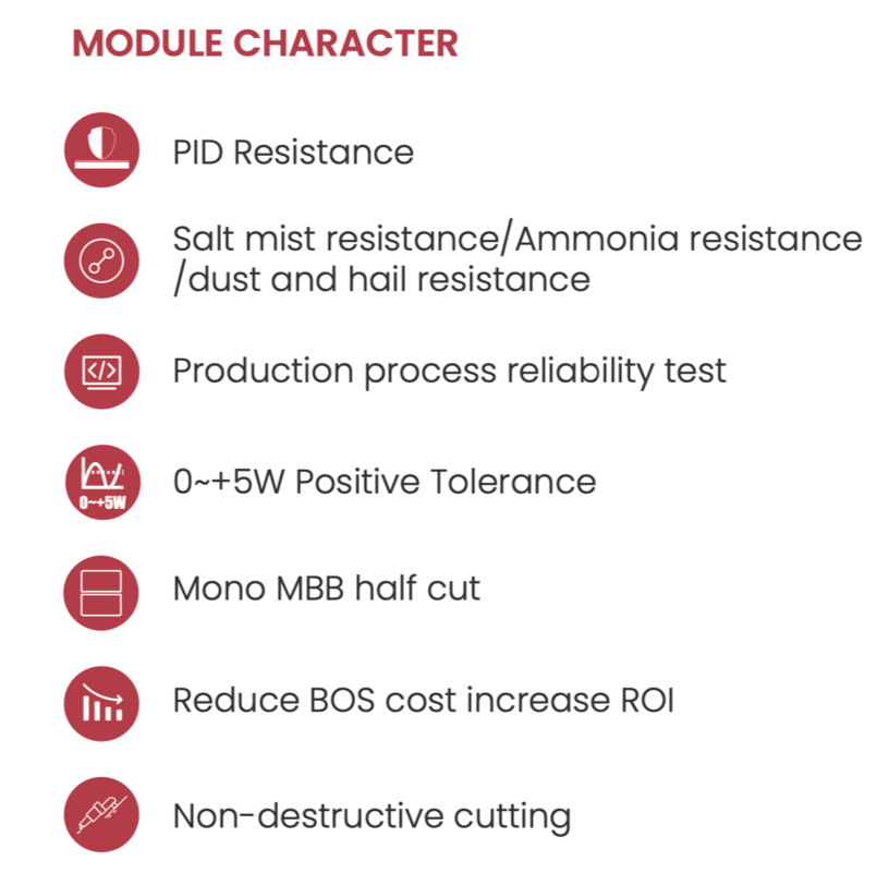 Excellent technical advantages and system design scheme to achieve high reliability, power generation effective gain and EPC cost reduction. Products can match different installation conditions, taking into account high adaptability and high compatibility. With mature support and inverter scheme, customized design for industrial and commercial and centralized ground power stations.